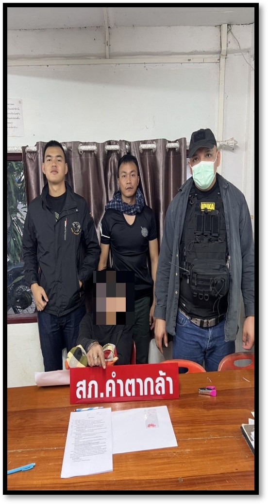 วันที่ 24 ธันวาคม 2567 โดยการอำนวยการของ พ.ต.อ.นพดล วิเศษศรี ผกก.สภ.คำตากล้า พ.ต.ท.สุเทพ สนิทชน รอง ผกก.สส.สภ.คำตากล้า พ.ต.ท.อัครเดช สุวรรณหงษ์ สว.สส.สภ.คำตากล้า ได้จับกุมผู้ต้องหา จำนวน 1 คน พร้อมด้วยของกลาง(ของกลางลำดับที่ 1) ยาเสพติดให้โทษในประเภท 1 (ยาบ้า) สีแดง จำนวน 171 เม็ด และสีเขียว จำนวน 1 เม็ด ชนิดกลมแบน มีอักษร WY อยู่ตรงกลาง อีกด้านหนึ่งผิวเรียบ บรรจุในถุงพลาสติกใส ชนิดกดปิด-ดึงเปิด รวมยาบ้าของกลาง จำนวน ๑๗๒ เม็ด (ของกลางลำดับที่ 2) โทรศัพท์มือถือ ยี่ห้อ เรียวมี รุ่น C305 สีฟ้า ตำแหน่งที่พบของกลาง ของกลางลำดับที่ 1,2 ซุกซ่อนอยู่ในกระเป๋าสีชมพู-ม่วงที่วางอยู่ข้างตัวผู้ต้องหา โดยกล่าวหาว่า “จำหน่ายโดยมีไว้เพื่อจำหน่ายซึ่งยาเสพติดให้โทษในประเภท 1 (เมทแอมเฟตามีนไฮโดรคลอไรด์) อันเป็นการกระทำเพื่อการค้าและก่อให้เกิดการแพร่กระจายในกลุ่มประชาชน โดยไม่ได้รับอนุญาต และเสพยาเสพติดให้โทษในประเภท 1 (เมทแอมเฟตามีน)โดยผิดกฎหมาย”สถานที่จับกุม หมู่ที่ 1 ตำบลคำตากล้า อำเภอคำตากล้า จังหวัดสกลนคร